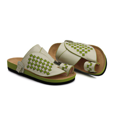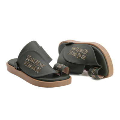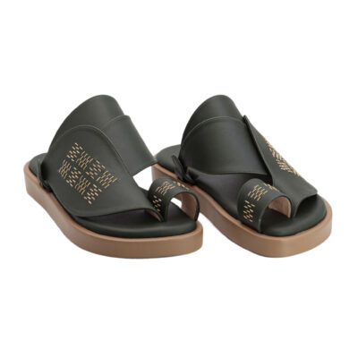 حذاء شرقي سعودي انيق بتصميم ولون زيتي وارضية خشبي