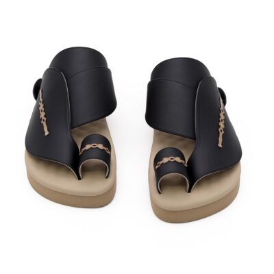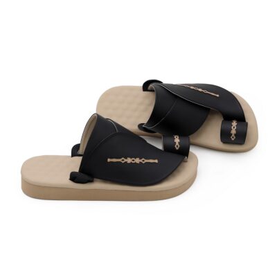 حذاء ونعال شرقي إيطالي فاخر بتصميم لون اسود مطرز