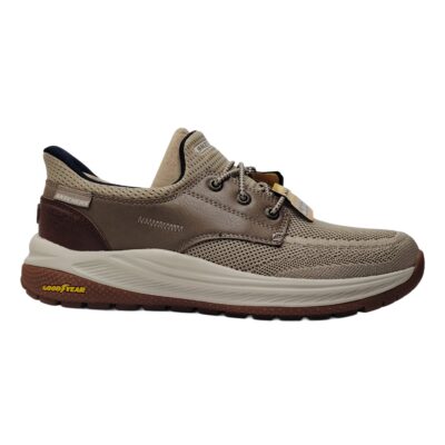 حذاء سكيتشرز رياضي بتصميم انيق باللون تابي واسود