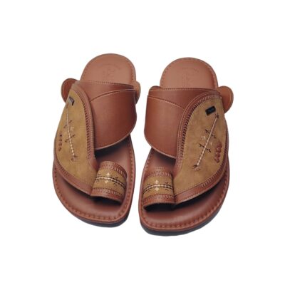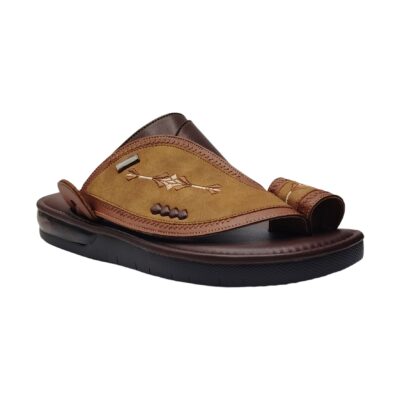 نعال شرقي رجالي منقوش بني فاتح مريح تطريزات حصرية