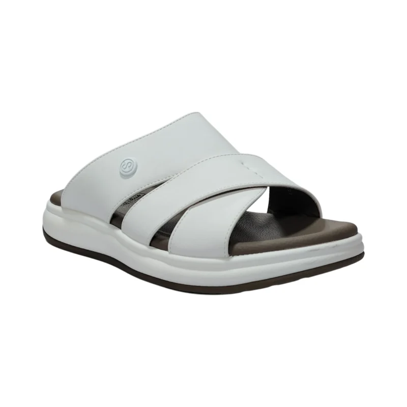 نعال خليجي فاخر ابيض مصنوع من جلد طبيعي عالي الجودة، يوفر تجربة ارتداء مريحة طوال اليوم.