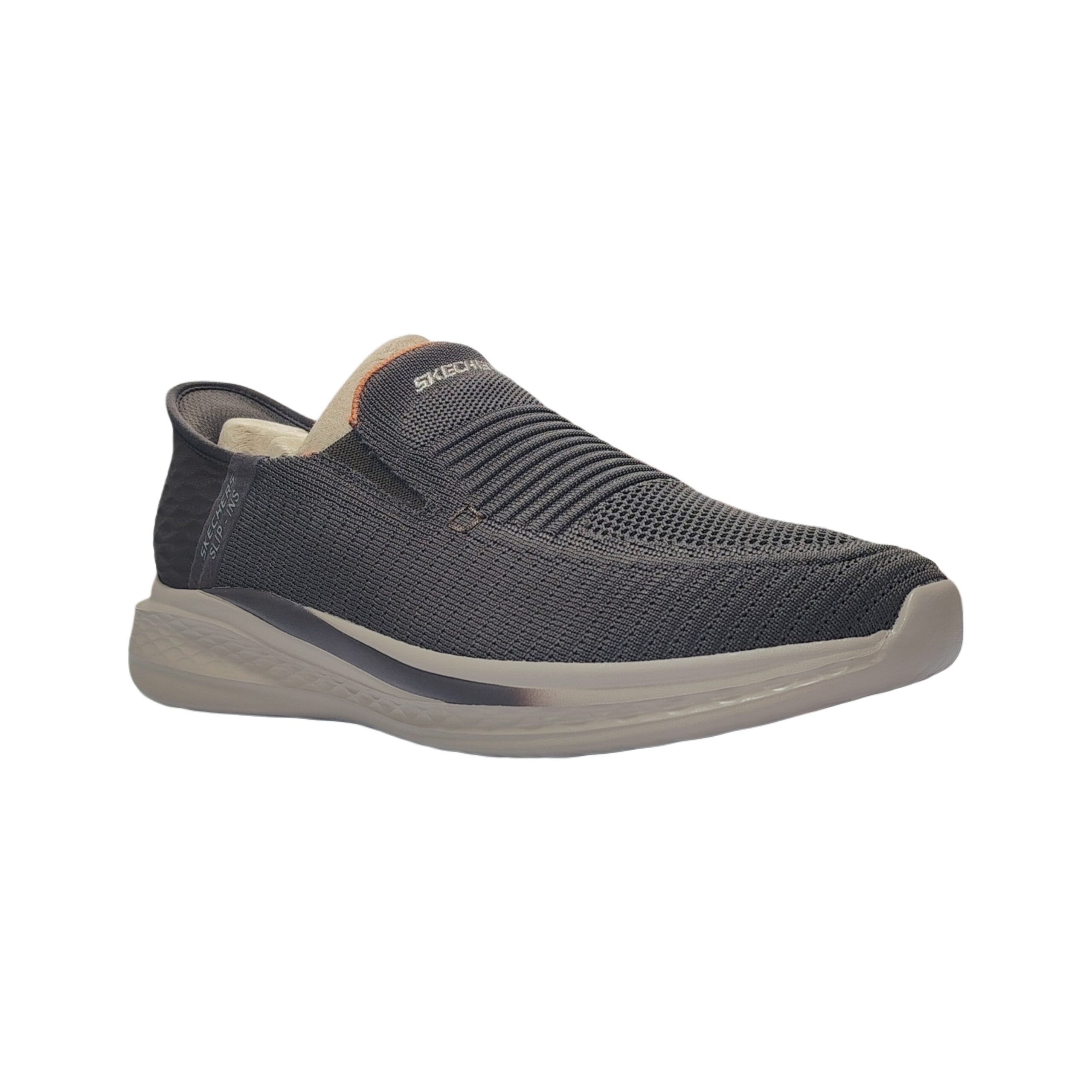 ارتقِ بتجربتك اليومية مع حذاء سكيتشرز الرجالي لون رمادي غامق المصمم خصيصًا للراحة والأداء العالي. يتميز بنعل مبطن بتقنية امتصاص الصدمات وخامة شبكية خفيفة لراحة تدوم طوال اليوم.