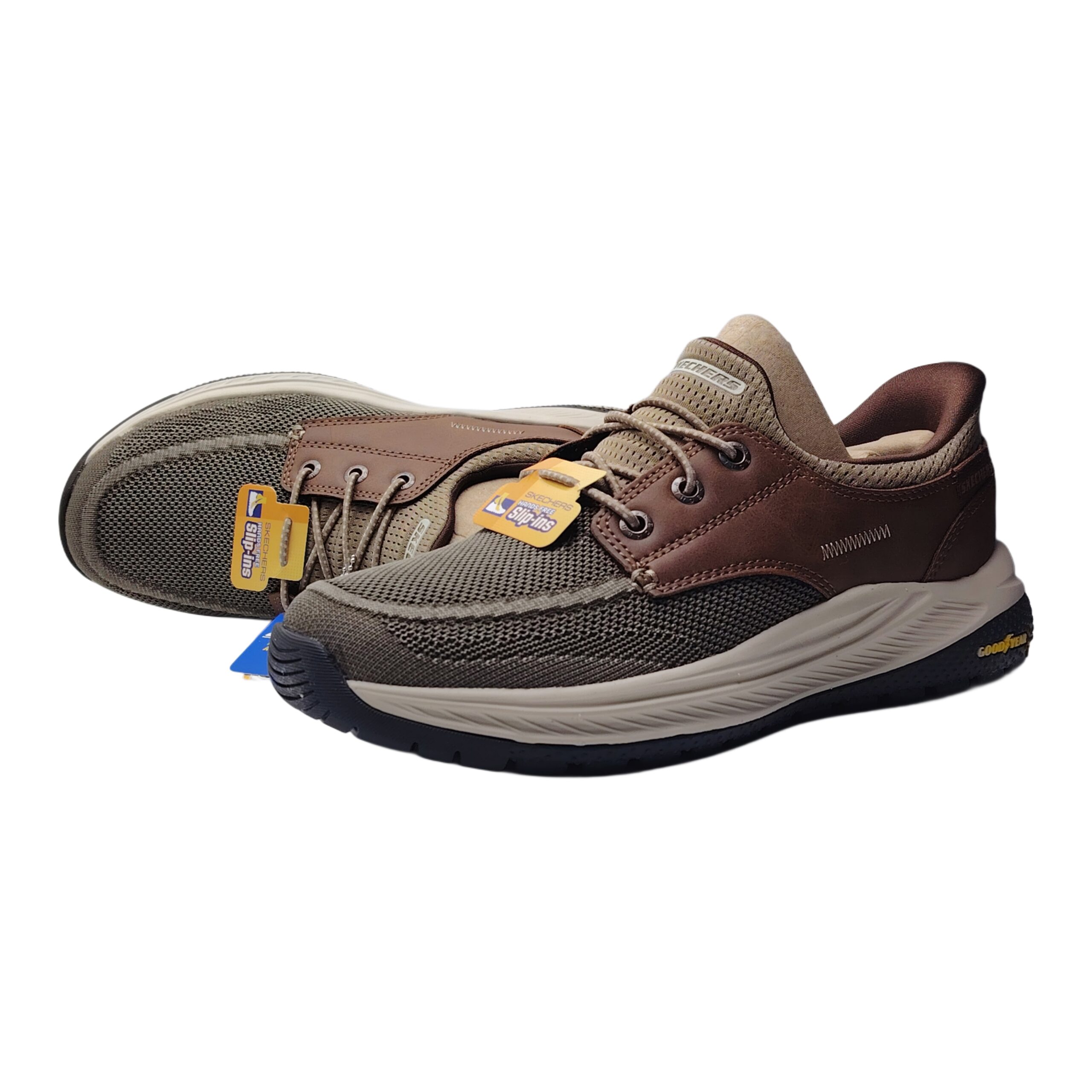 حذاء سكيتشرز الرياضي باللون البني والاسود هو الخيار المثالي لكل رجل يبحث عن التميز والأداء العالي في كل خطوة. يتميز هذا الحذاء بتصميمه المبدع الذي يجمع بين الأناقة والراحة الفائقة،