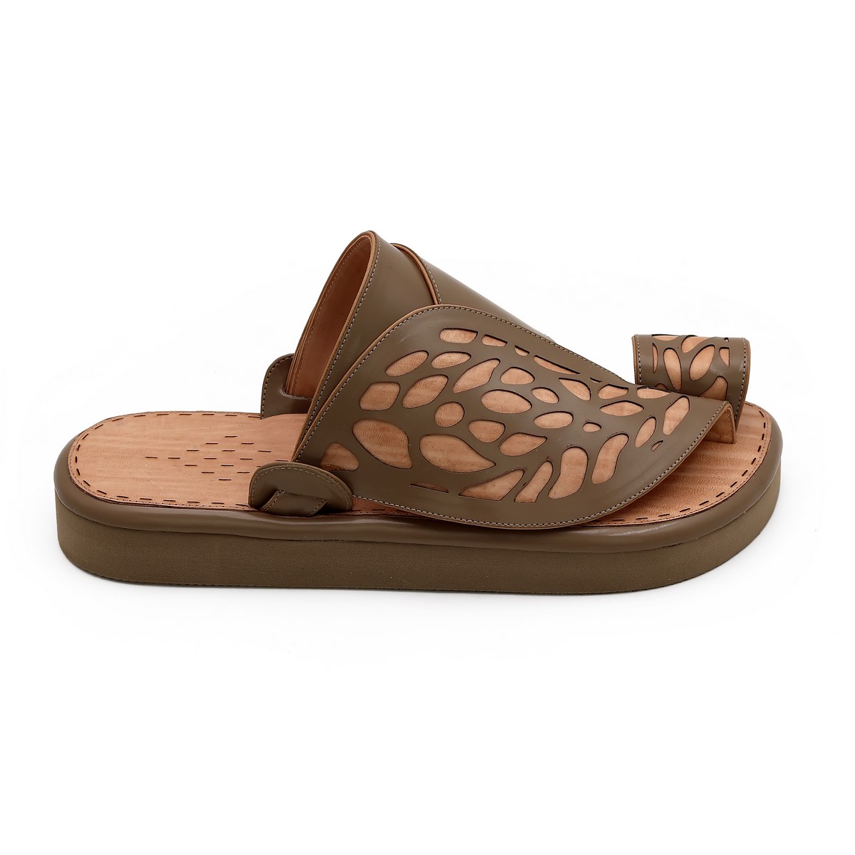 حذاء شرقي سعودي انيق بتصميم ولون زيتي وارضية خشبي