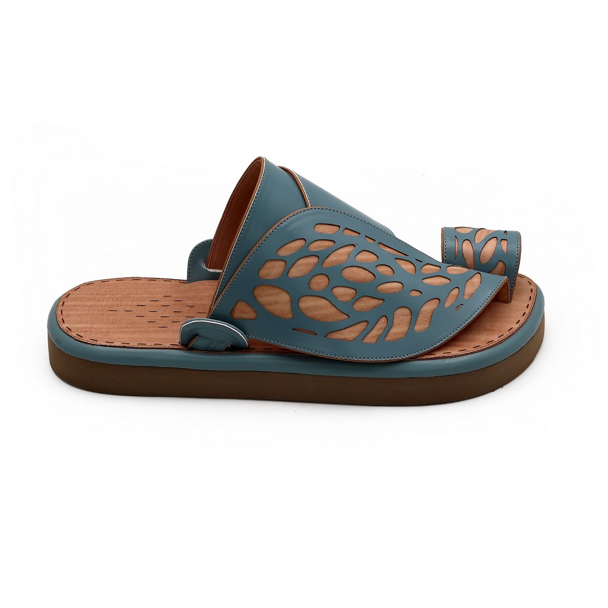 حذاء شرقي سعودي فخم – جلد طبيعي، لون بحري، وأرضية خشبي | صناعة وطنية