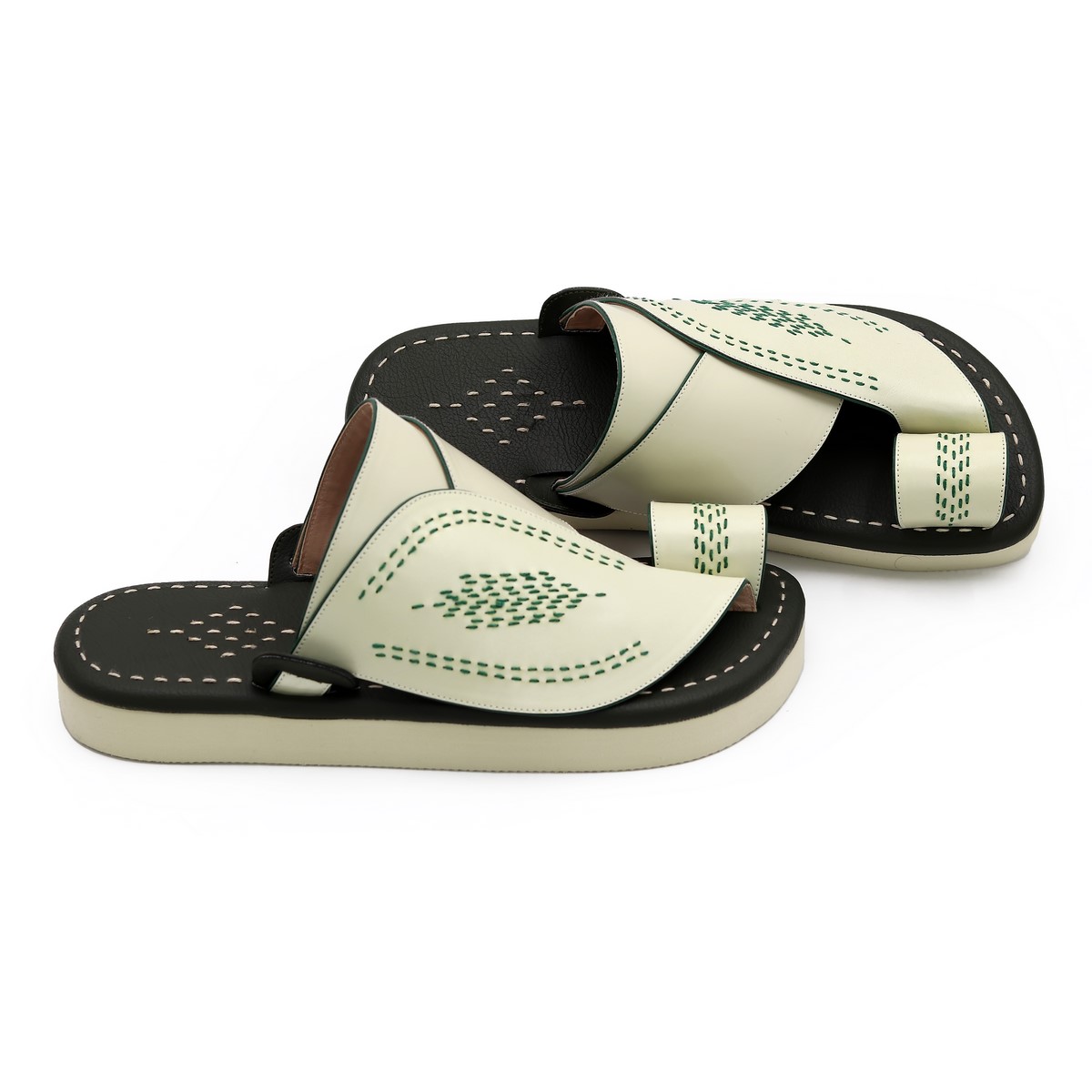 حذاء شرقي وطني فاخر بتصميم مطرز اخضر لون ابيض وارضية اسود