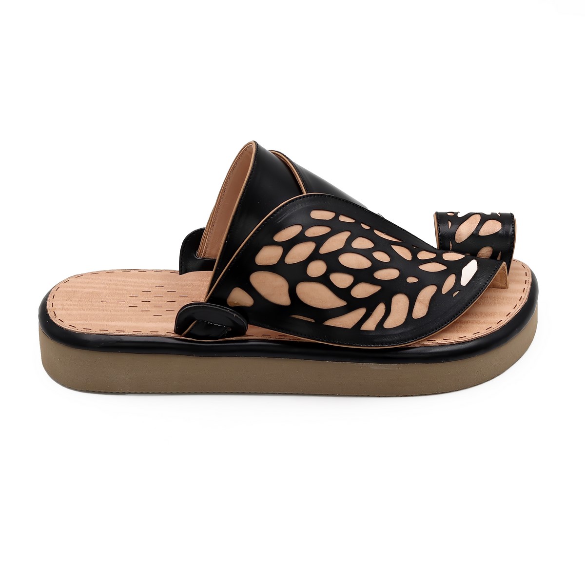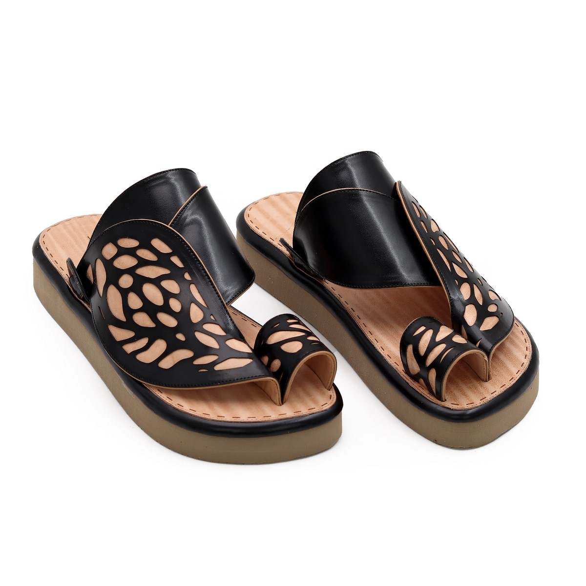 حذاء شرقي وطني فاخر بتصميم ولون اسود وارضية خشبي