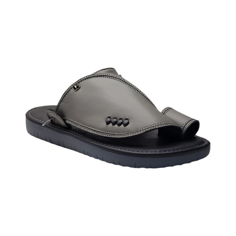 نعال شرقي إيطالي فاخر للرجال – تطريز صافي أنيق بلون رصاصي طبيعي | زبيريات جلد طبيعي مريحة